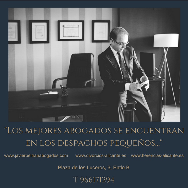Javier Beltrán Abogados es un despacho de aboagdos en Alicante con una trayectoria profesional ininterrumpida iniciada en 1995. Centrada en Derecho Civil, Derecho de Familia y litigación procesal. A lo largo de estos años, el despacho ha intervenido en milies de asuntos judiciales y extrajudiciales, ofreciendo un asesoramiento basado en el rigor jurídico, la preparación del caso y la atención personalizada.